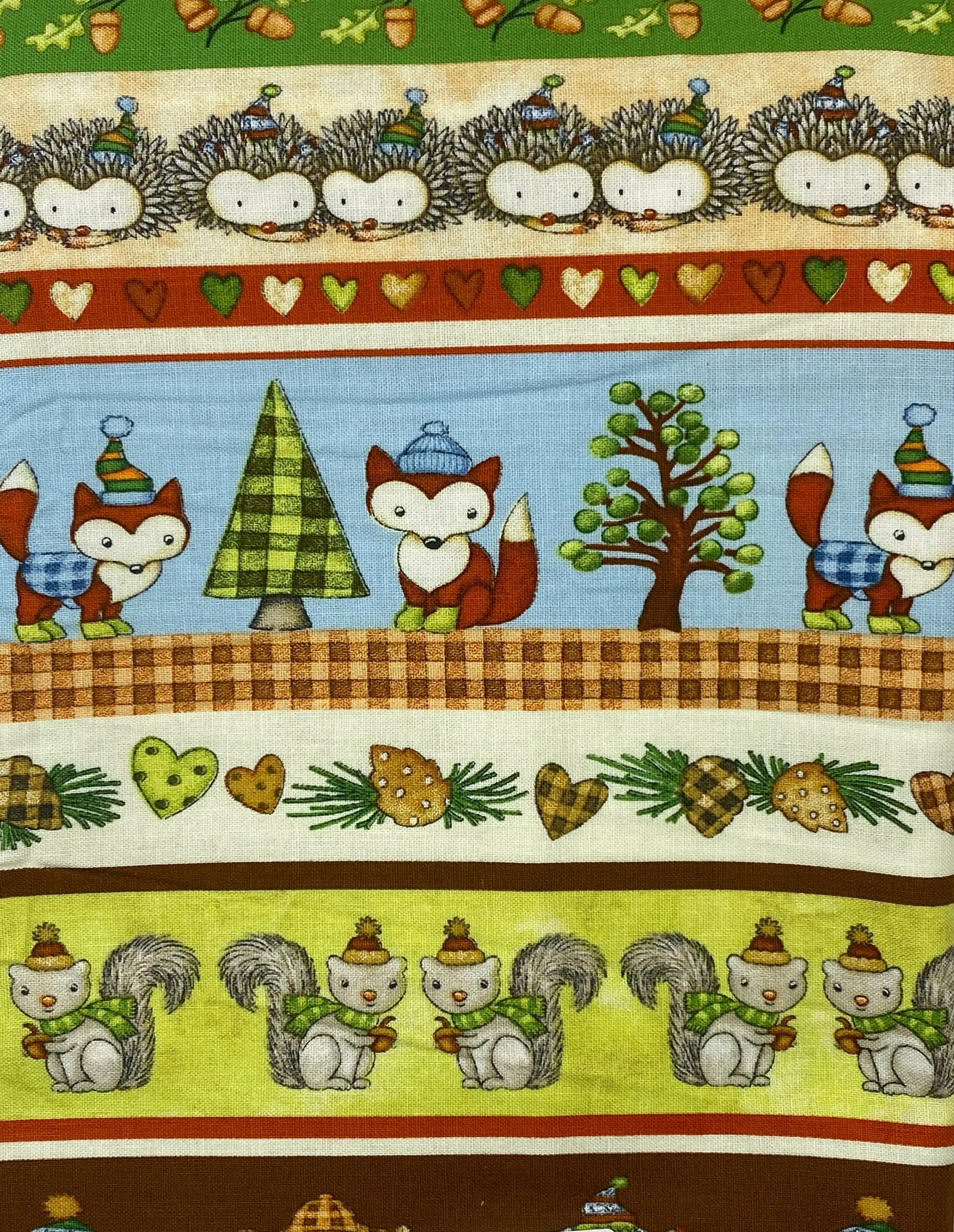 Tessuto Americano Hedgehugs animaletti del bosco 100% cotone h 110 - € 18,00/mt